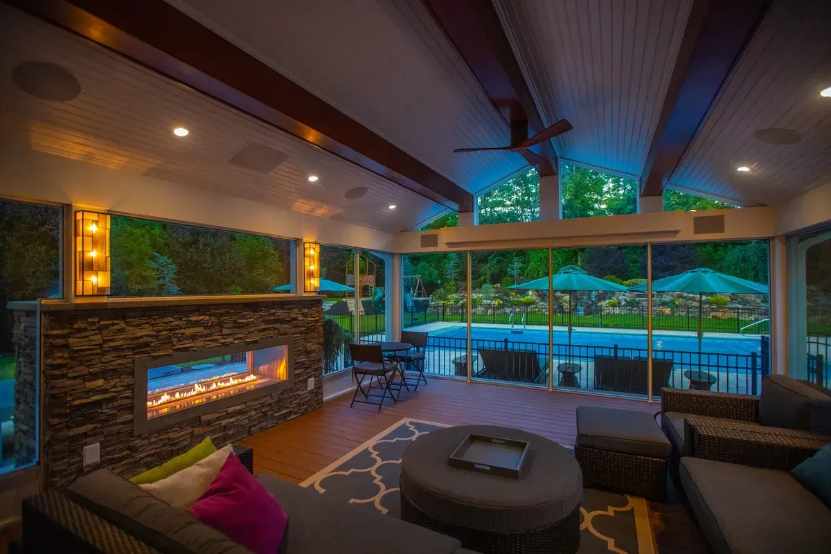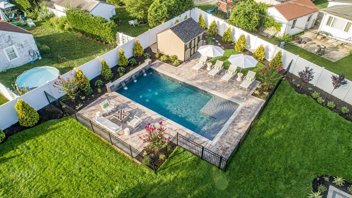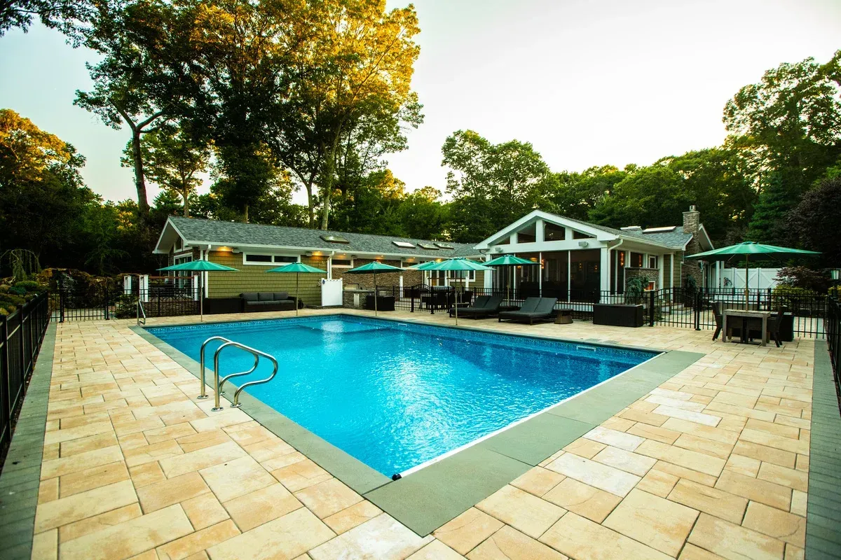 Our outdoor living services transform residential properties into fully integrated entertainment environments. We provide pool installation projects including steel wall vinyl liner pools, concrete wall vinyl liner pools, and gunite pools. We construct outdoor kitchen installations, fire pit features, pergola installation shade structures, pavilions, saunas, cold plunges, and multi-game sport court Melville NY systems. Audio and video entertainment integration is also available.